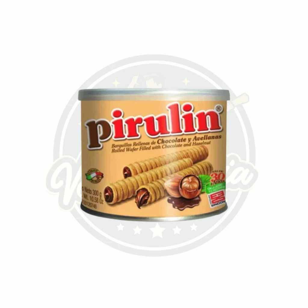 Aproveite o sabor autêntico do Pirulin, o icônico wafer recheado com creme de chocolate e avelã, crocante por fora e incrivelmente cremoso por dentro. Sua embalagem em lata de 300g é perfeita para compartilhar em qualquer ocasião ou saborear como um delicioso mimo.